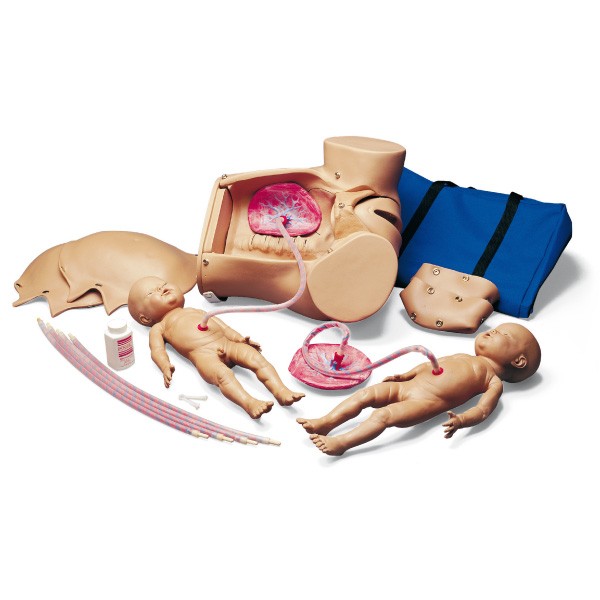 Livré avec 2 enveloppes stomacales (couleur peau/transparent), 1 foetus masculin et 1 foetus féminin avec placenta, 5 cordons ombilicaux, 2 clamps de Bar, talc et sac de transport.