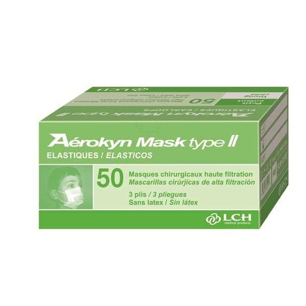Masque chirurgie petit AEROKYN Bleu/Type II/Elastique/ btes de 50pcs