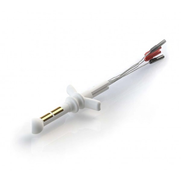 Le raccordement électrique à l'unité de stimulation ou de biofeedback s'effectue au moyen de deux ou quatre fils (longueur 20 cm environ) avec embout femelle de 2mm. La sonde peut être utilisée avec tout type d'appareil capable d'émettre des impulsions biphasiques symétriques (à valeur moyenne nulle).